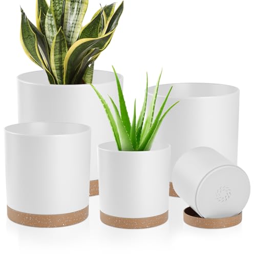 Utopia Home Plant Pots Indoor with Drainage (5 Pack White Plastic Planters)