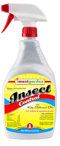 The I Must Garden Insect Control Spray stands out as an excellent choice for gardeners who prioritize safety without compromising effectiveness against whiteflies. This 32-ounce ready-to-use formula contains natural botanical oils that kill whiteflies on contact while repelling future infestations from treated areas. You’ll appreciate its versatility for both indoor and outdoor applications, making it perfect for protecting houseplants during winter months or treating garden plants year-round. The spray requires no mixing or measuring, allowing you to tackle whitefly problems immediately when they appear. Users consistently report positive results against whiteflies and aphids, though some note that repeated applications may be necessary for persistent infestations.